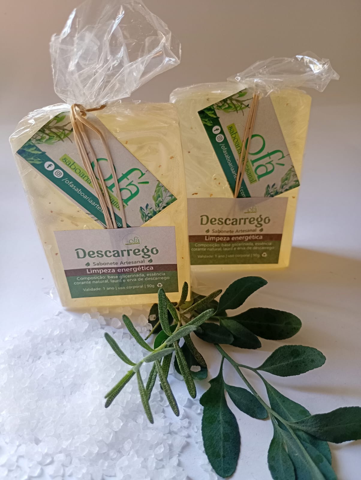 O Sabonete Artesanal de Descarrego é feito com glicerina vegetal e uma combinação especial de ervas consagradas na limpeza espiritual, como arruda, guiné, alecrim e anil.
